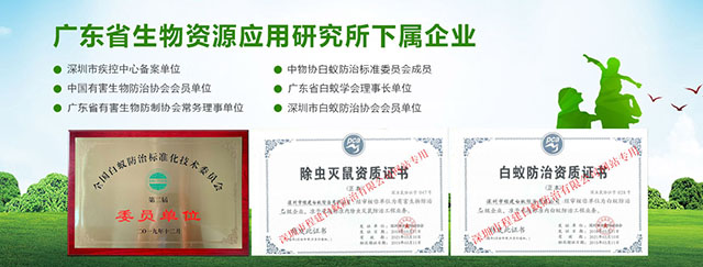 專注于徹底根治、防治結(jié)合,售后跟蹤服務(wù),專業(yè)服務(wù)工程師有豐富實戰(zhàn)經(jīng)驗超過十年。持有專業(yè)資格證書認(rèn)證:“有害生物防制服務(wù)機構(gòu)服務(wù)能力證書B級”、“白蟻防治服務(wù)機構(gòu)服務(wù)能力證書B級”所有員工持有“深圳市白蟻防治上崗證”和“深圳市除蟲滅鼠上崗證”,雙資格證上崗服務(wù)。榮獲過:“優(yōu)質(zhì)服務(wù)示范單位”、“白蟻防治服務(wù)信譽AAA級單位”、“深圳市白蟻防治先進(jìn)單位”、“深圳市十大白蟻防治品牌”、“深圳市殺蟲公司”、“深圳市消殺公司”先進(jìn)單位等榮譽。